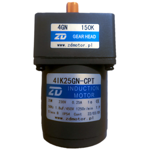 Silny napęd ZD-Motor 4IK25GN-CPT do palników pelletowych o dużej mocy oraz podajników ślimakowych. IP54, termoochrona CPT, moment do 8 Nm.